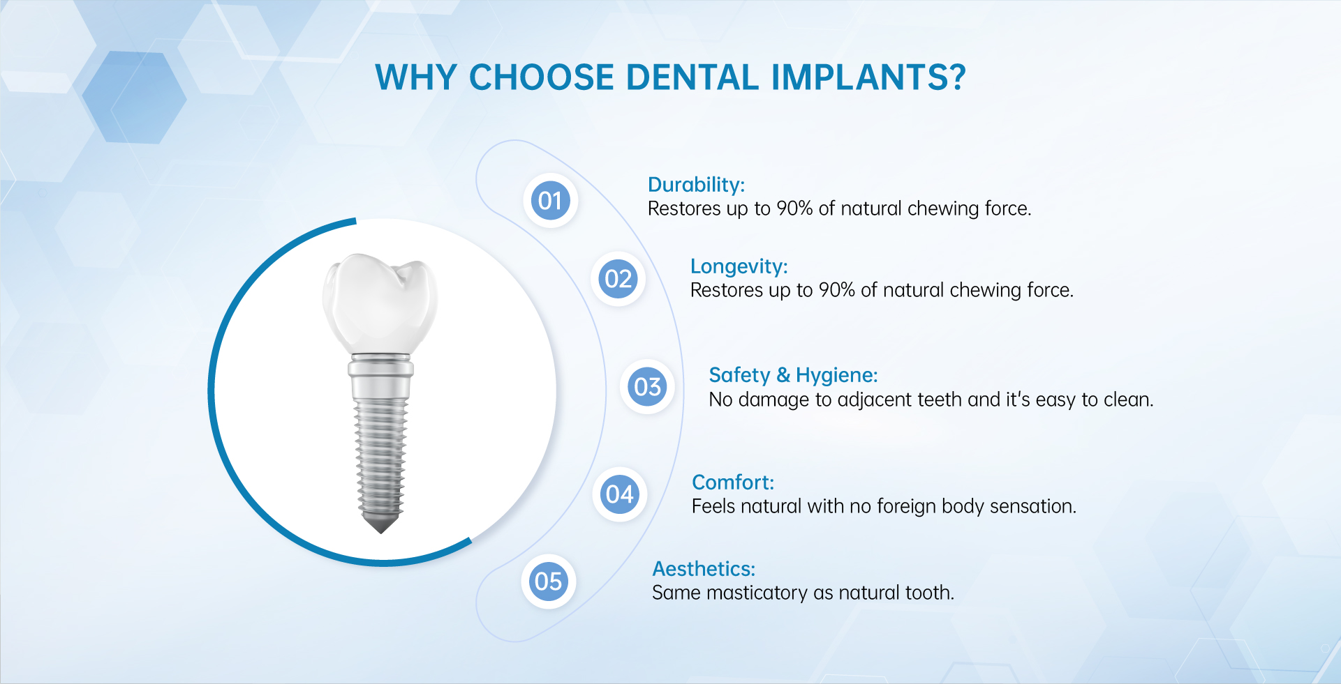 Patient Feedback:Tought&Feel like natural teeth.Unlike removable dentures, implant-supported teeth are designed for lasting comfort,