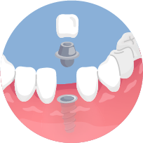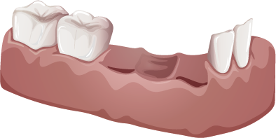 Treatment Plan:Three implants were placed to anchor a bridge that replaces five teeth,with two artificial teeth suspended in between.