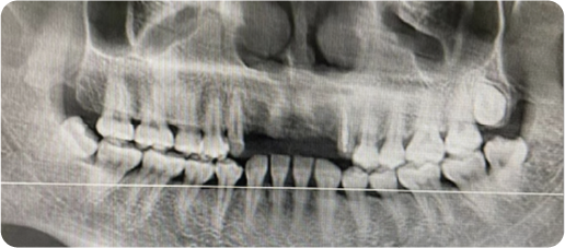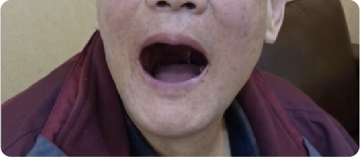 Evaluation: Long-standing tooth loss, characterized by mobile teeth and resulting alveolar bone resorption