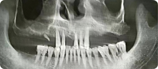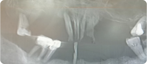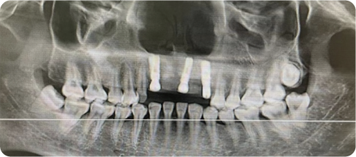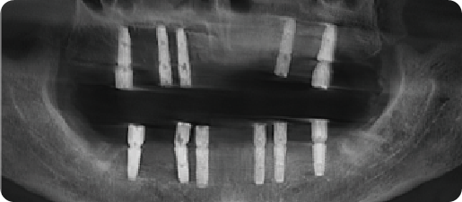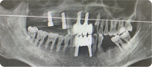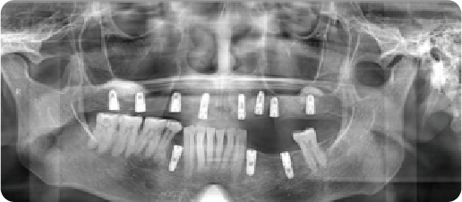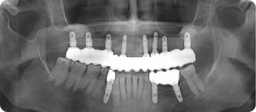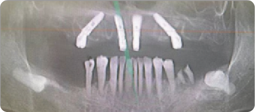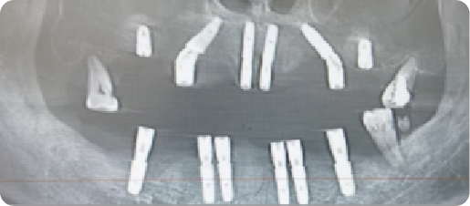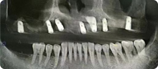 Treatment Plan:The remaining mobile teeth were extracted, followed by the placement of six maxillary implants to restore