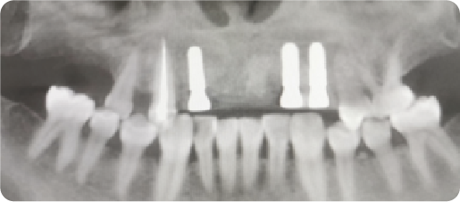 augmentation to restore masticatory function in the upper arch, and three implants were placed in the mandible, supporting a 4-unit prosthesis to restore masticatory function.